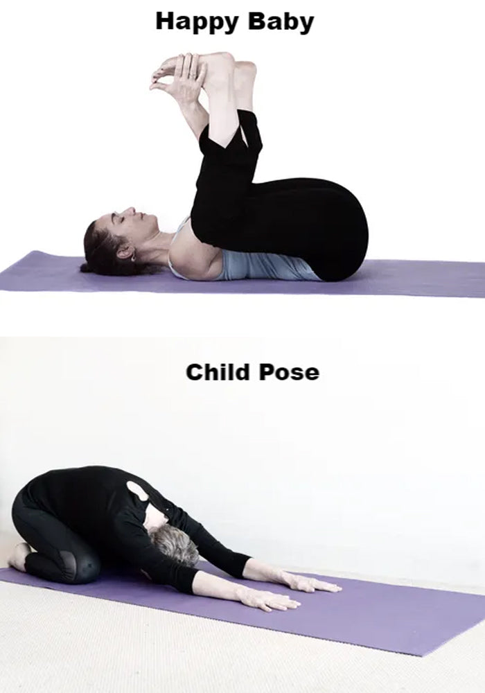 Ga eerst op uw knieën zitten. Buig vervolgens voorover en leg uw buik op uw bovenbenen. Richt uw hoofd en uw gezicht naar de grond. Voor meer comfort kunt u een kussen onder uw hoofd leggen. Uw armen liggen languit voor u met de handpalmen omlaag. U kunt uw ook naast uw lichaam leggen waarbij uw handen uw voeten kunnen raken. De schouders zijn ontspannen. U ademt nu rustig en diep in en uit. Houd deze houding dertig seconden tot twee minuten aan.