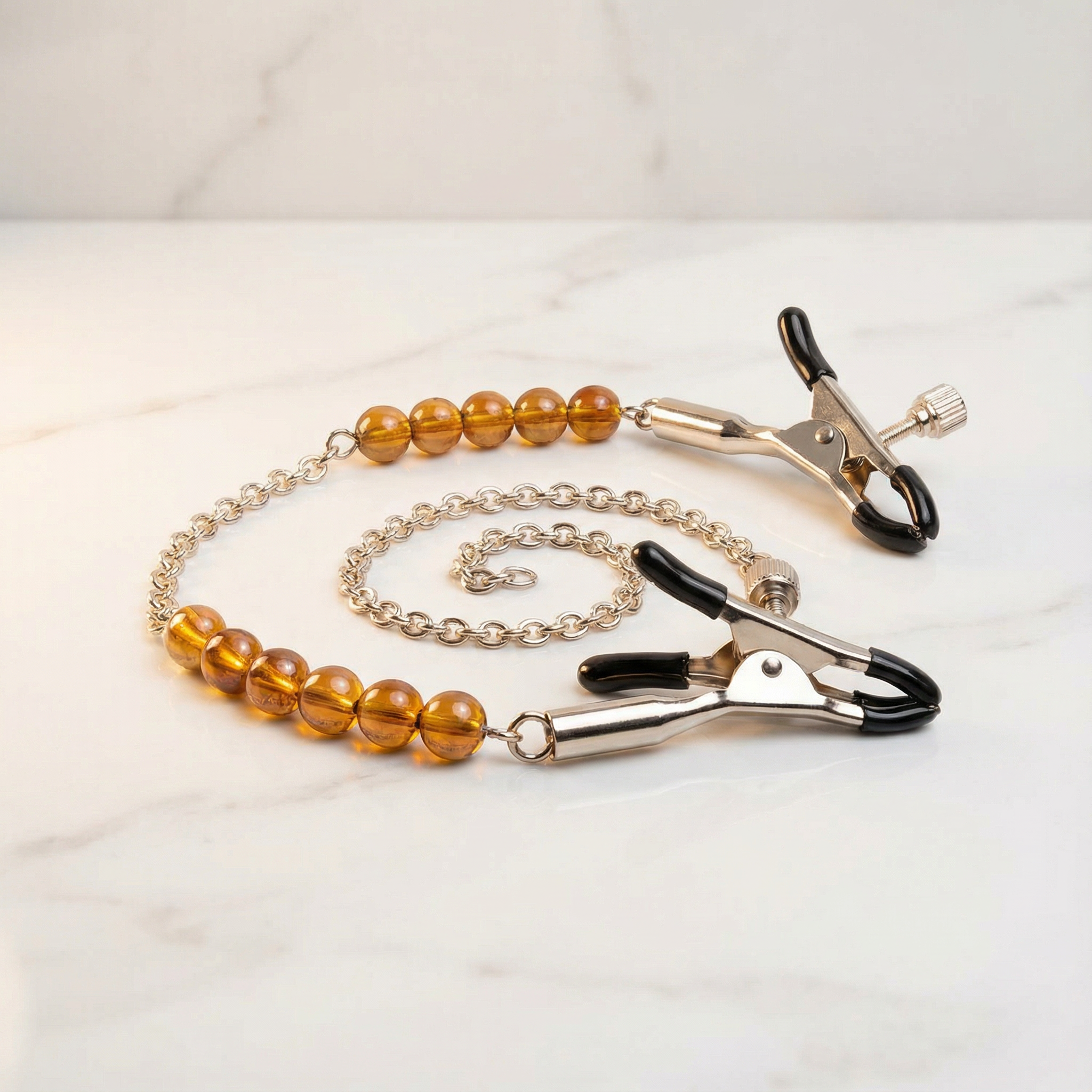 Amber Beaded Nipple Clamps – Verleidelijk en Prikkelend