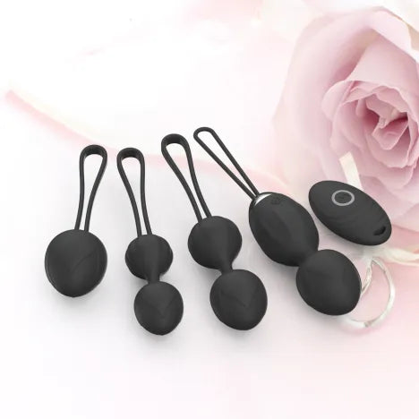 De set bevat 4 kegelballen in oplopende gewichten van 44, 57, 81 en 105 gram met afnemende diameters van 3,6 cm tot 2,8 cm. Eén van de kegelballen, kegel 2 van 57 gram, is vibrerend en wordt geleverd met een draadloze afstandsbediening. Hierdoor combineert de set functionele bekkenbodemtraining met speelse mogelijkheden.