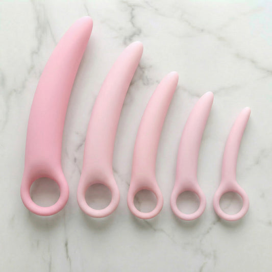 Met deze set kunt u geleidelijk wennen aan vaginale penetratie, stap voor stap en in uw eigen tempo. U begint met de kleinste dilator en werkt vervolgens langzaam toe naar de grotere formaten. Dit helpt om het lichaam en de geest weer vertrouwd te maken met het gevoel van penetratie en helpt angsten te overwinnen. Een bekkentherapeut of seksuoloog kan u hierbij goed begeleiden.